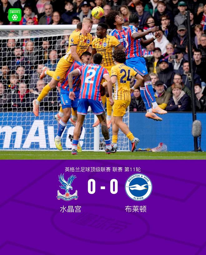 北京時間11月9日英格蘭足球頂級聯賽第11輪,水晶宮主場對陣布萊頓。最終比分水晶宮 0-0 布萊頓。